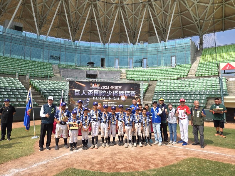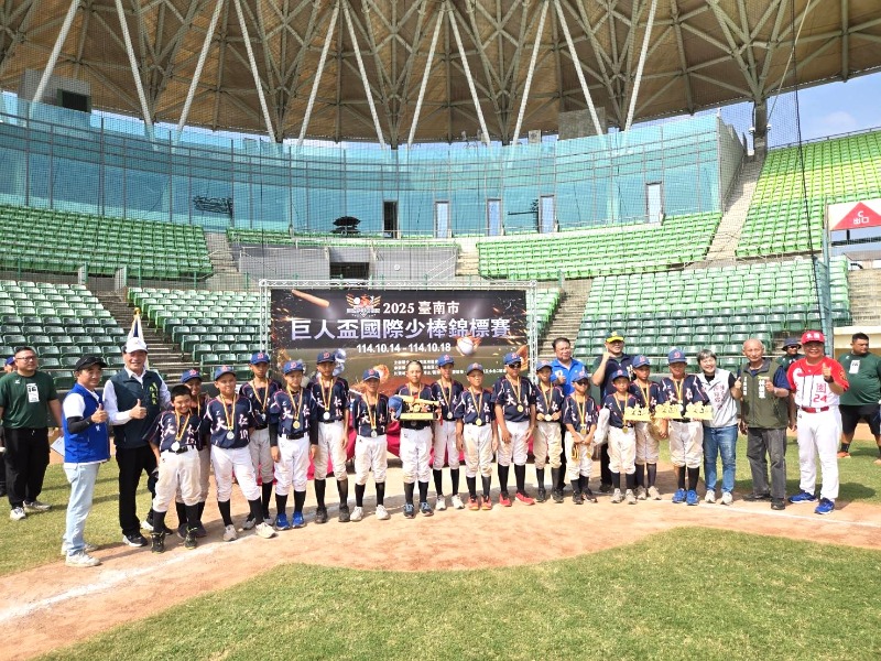 2025臺南市第16屆巨人盃國際少棒錦標賽歷經五天熱血對決,10月18日於亞太國際棒球訓練中心少棒主球場舉行閉幕典禮,由體育局陳良乾局長、穎艾達利議員、林俊憲立委秘書吳茂雄、陳亭妃立委秘書陳怡伊、謝龍介立委秘書方文賢及協進國小校長陳智揚出席閉幕典禮,為這場棒球盛會劃下完美句點。本屆賽事自10月14日至18日舉行,共有40支少棒勁旅齊聚臺南,包括從韓國遠道而來的代表隊與臺灣各地少棒小將同場競技,以球會友,展現棒球運動無國界的熱情與魅力。最終由臺北東園國小勇奪冠軍,臺中大仁國小榮獲亞軍,臺東豐田國小及新北民安國小則分別拿下季軍與殿軍之殊榮。